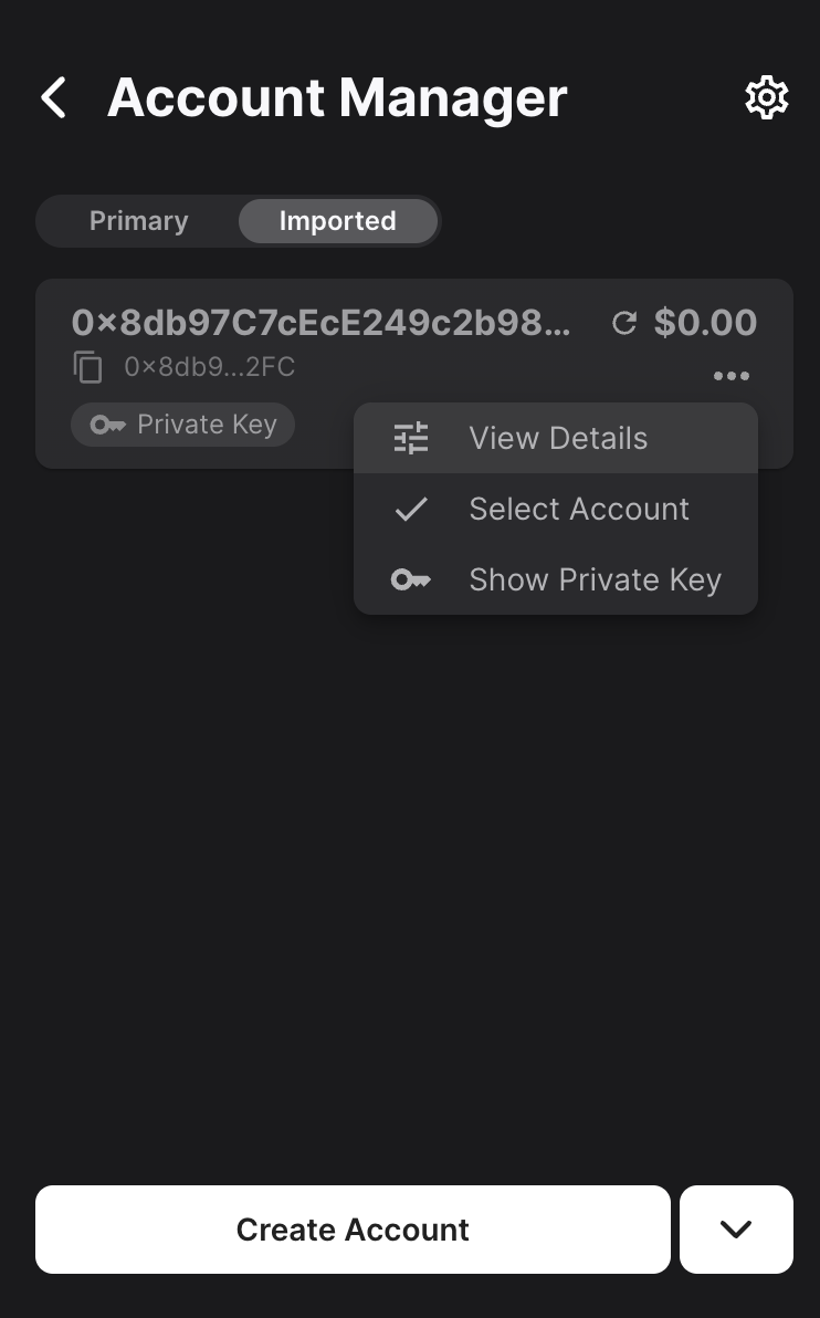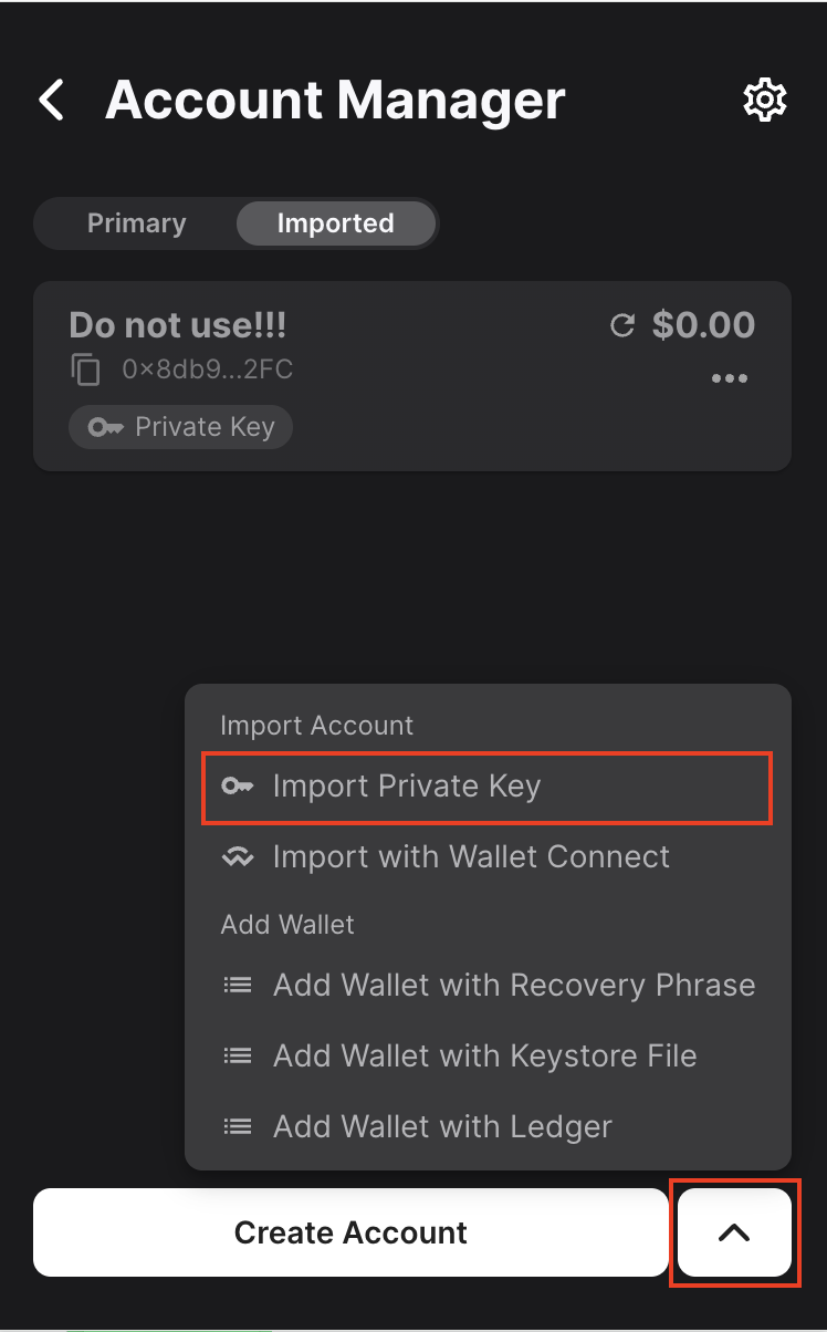 To add the private key to your core wallet, open the core extension and navigate to the Account Manager