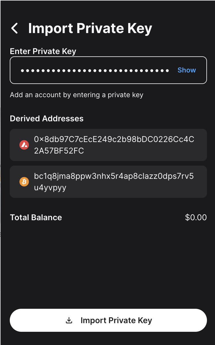 There enter the private key and click on Import Private Key